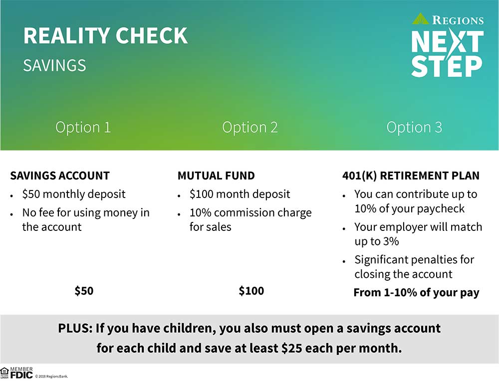 Regions Next Step Reality Check - is an interactive and engaging way for students to learn about building and balancing a budget through Next Step Reality Check.